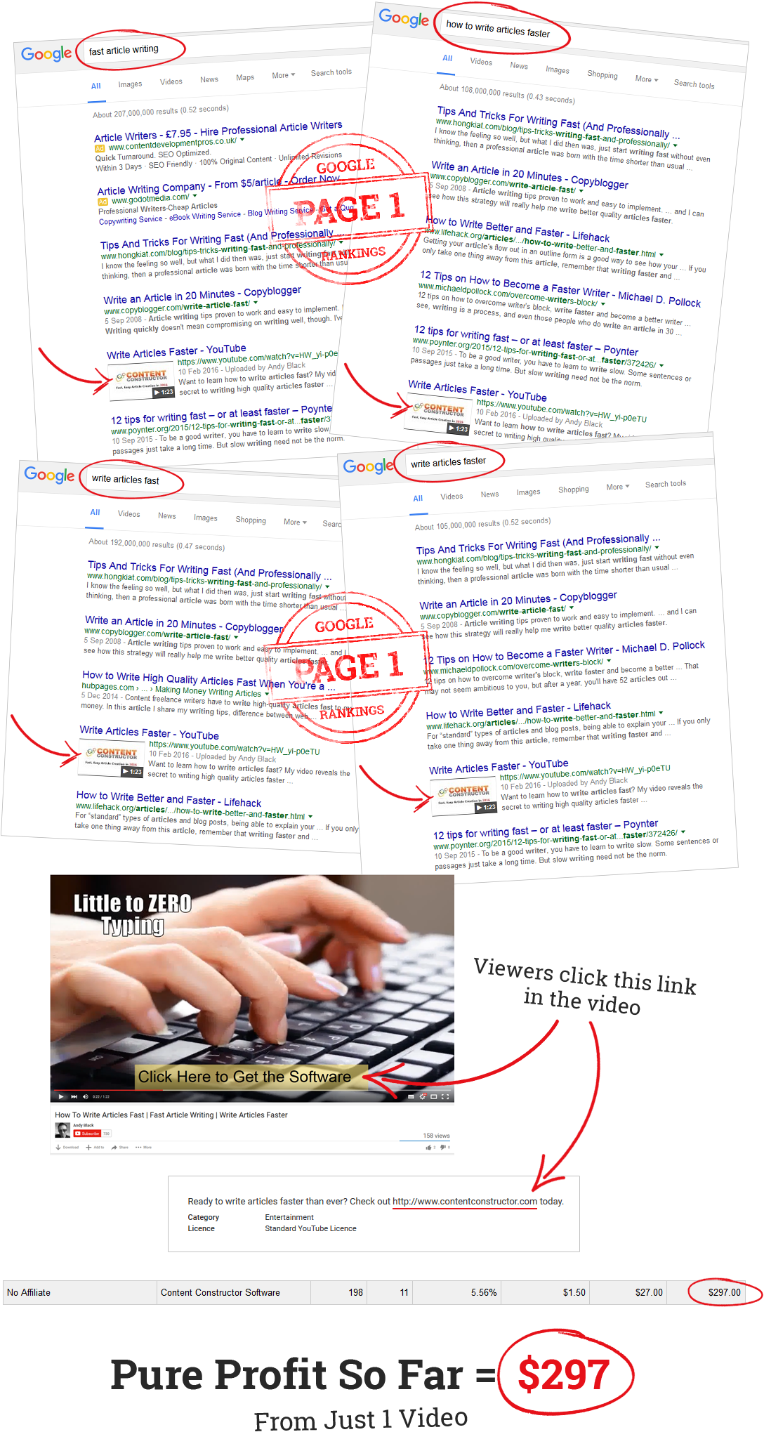 Rank your newly created videos on Google’s first page for massive exposure, views and INCOME.